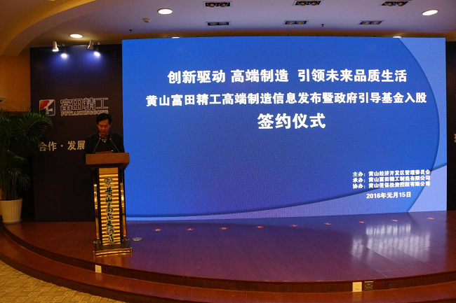 當(dāng)天下午,在安徽省黃山市黃山高爾夫大酒店隆重舉行了該公司機(jī)械制造信息發(fā)布暨政府引導(dǎo)資金入股簽約儀式。出席嘉賓有: